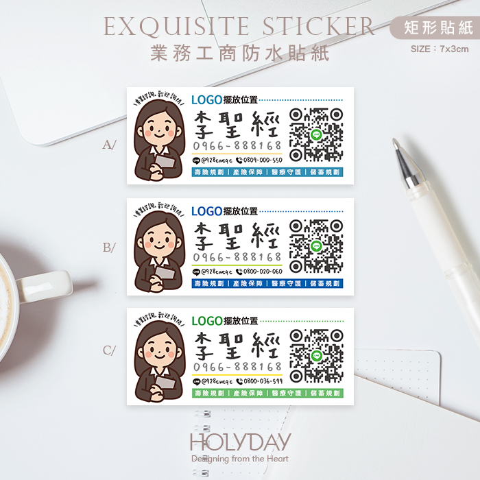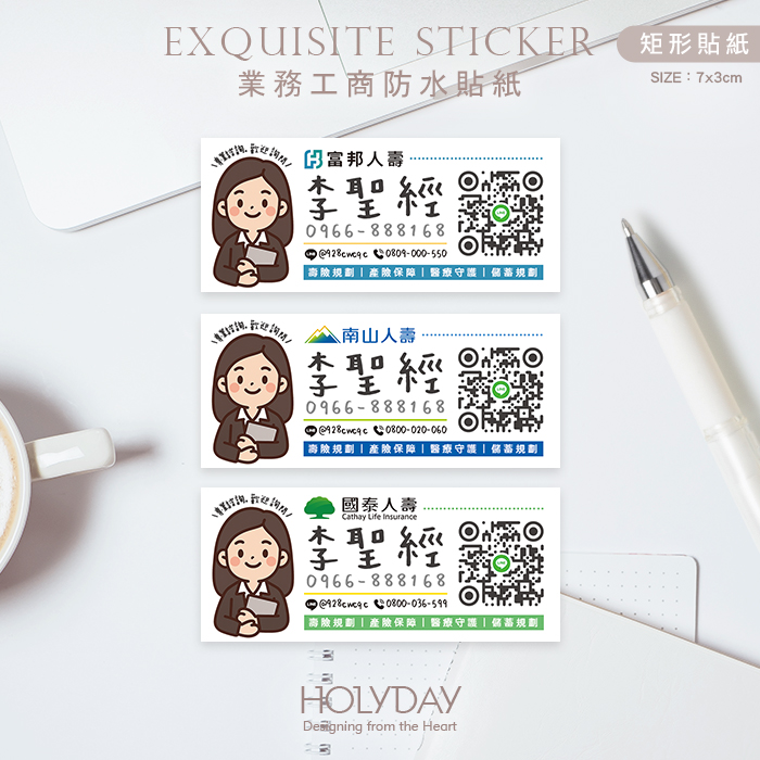 日常良伴!SQ04保險業務客製貼紙.業務送禮贈品貼紙.Q版姓名貼紙.名片貼紙.桌曆貼紙.企業行銷.富邦保險.南山人壽.國泰人壽.台灣人壽.新光人壽.三商美邦人壽.健身房教練.房仲業者┊HOLYDAY